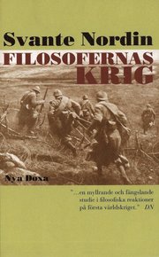 I denna recension kommer olika omständigheter rörande det Första världskriget (1914-1918) återspeglas. Boken heter Filosofernas krig : den europeiska filosofin under första världskriget (2002) och är författad av Svante Nordin. 1998 var boken nominerad till Augustpriset. Första världskriget har ofta karaktäriserats som den europeiska civilisationens sammanbrott. Kriget gjorde avtryck inte bara i kulturen utan även i den filosofiska tankeströmningen. Nordin ser på hur filosoferna mellan 1914-1918 uppfattade krigets etiska, historiefilosofiska eller metafysiska innebörd; samt hur kriget inverkade på den filosofiska traditionen i ett större perspektiv. Ett flertal kända och mindre kända filosofer ger sin version av tänkandets inverkan på europeiskt tänkande under denna period. Bokens kapitel är lämpligt nog uppdelad så att varje krigsår representerar ett eget kapitel. Ett litet originellt upplägg. Nordin har tidigare fokuserat på västerländsk idétradition och i förordet påpekas att det numera finns en hel forskningstradition kring denna boks tidstema - Det första världskriget och dess inverkan europeisk kultur och filosofi. Nordin har en viktig inspirationskälla, Ludvig Wittgenstein. Han nämner också andra intressanta namn, t ex Henrik Jacobssen som hävdat granatchockterapins betydelse för psykoanalysens spridning. I inledningen nämns hur krigen i sig givit upphov till filosofisk reflexion. Det kan vara krigets etiska aspekter - vad orsakar krig? Under vilka villkor kan krig upplevas som rättfärdiga? Boken är lika mycket kulturhistoria som filosofi. Vi får möta Thomas Mann och Friedrich Nietzsche; men han skriver även om Jean Jaurès, Goplana, Edith Stein, Albert Schweitzer, Emil Lask, Bertrand Russel, Wittgenstein. Namnlistan kan säkert göras längre. Martin Heiddegger och Edmund Husserl har också sina givna plaser i sammanhanget.
